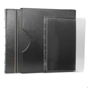 O Álbum Fichário Luxo Preto Gigante 10 Folhas para Cédulas 1 Espaço 28x21 , é um kit de fichário que acompanha folhas para cédulas em acetato tamanho 28x21cm, a transparência da folha é alta e cristalina, de forma que é possível ver sua cédula sem interferências, e de ambos os lados: frente e verso, dessa forma é possível apreciar sua coleção da melhor forma. Esse kit de folhas é feito em um material resistente sendo o principal organizador de cédulas colecionáveis para colecionador.