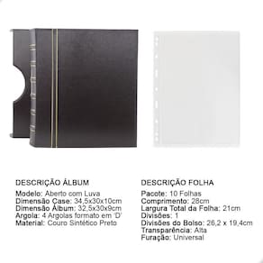 Álbum Fichário Luxo Preto Gigante 10 Folhas para Cédulas 1 Espaço 28x21