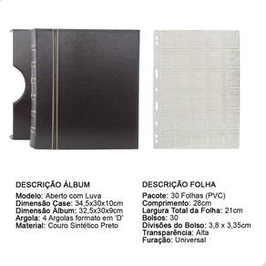 Álbum Fichário Luxo Preto Gigante 30 Folhas para Cédulas 1 Espaço 28x21