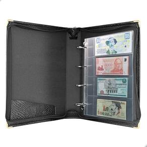 Álbum Fichário 10 Folhas para Cédulas 4 Espaços com Bolso 32x24 Ziper Cobra GG