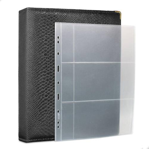 Álbum Fichário 30 Folhas para Cédulas 3 Espaços com Bolso 32x24 Cobra G, é um kit de fichário que acompanha folhas para cédulas em acetato tamanho 32x24cm, a transparência da folha é alta e cristalina, de forma que é possível ver sua cédula sem interferências, e de ambos os lados: frente e verso, dessa forma é possível apreciar sua coleção da melhor forma. Esse kit de folhas é feito em um material resistente sendo o principal organizador de cédulas colecionáveis para colecionador.