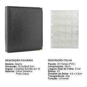 Álbum Fichário 30 Folhas para 600 Moedas 28x21 Cobra P