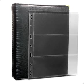 O Álbum Fichário 30 Folhas para Cédulas 3 Espaços 28x21 Cobra Fosco XL, é um kit de fichário que acompanha folhas para cédulas em acetato tamanho 28x21cm, a transparência da folha é alta e cristalina, de forma que é possível ver sua cédula sem interferências, e de ambos os lados: frente e verso, dessa forma é possível apreciar sua coleção da melhor forma. Esse kit de folhas é feito em um material resistente sendo o principal organizador de cédulas colecionáveis para colecionador.