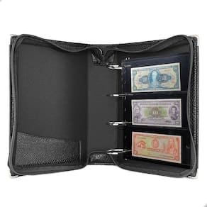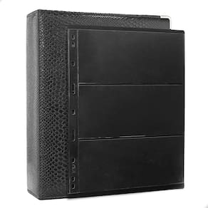 O Álbum Fichário 40 Folhas para Selos 3 Espaços 28x21 Cobra XL, é um kit de fichário que acompanha folhas para selos em acetato preto tamanho 28x21cm, a transparência da folha é alta e cristalina, de forma que é possível ver sua cédula sem interferências, dessa forma é possível apreciar sua coleção da melhor forma. Esse kit de folhas é feito em um material resistente sendo o principal organizador de cédulas colecionáveis para colecionador.