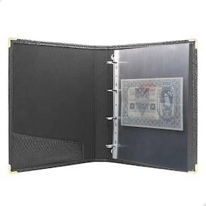 Álbum Fichário 40 Folhas PP para Cédulas 1 Espaço 32x24 Cobra GF, é um kit de fichário que acompanha Folhas PP. Seu acabamento é transparente, podendo visualizar as cédulas frente e verso. Essa folha é ideal para você criar aquele mostruário que sempre desejou com sua coleção de cédulas antigas, nacionais ou estrangeras e finalmente poder mostrar sua coleção toda organizada para sua família e amigos.