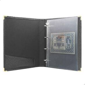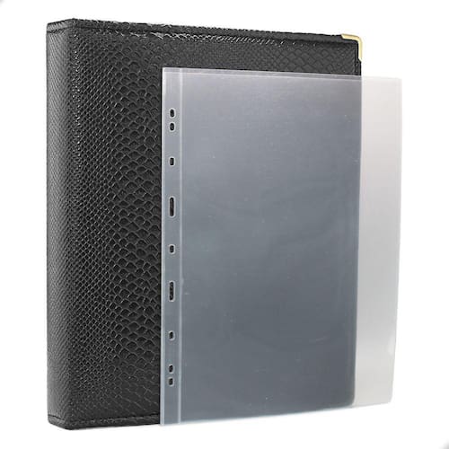 Álbum Fichário 50 Folhas para Cédulas 1 Espaço 32x24 Cobra GF, é um kit de fichário que acompanha folhas para cédulas em acetato tamanho 32x24cm, a transparência da folha é alta e cristalina, de forma que é possível ver sua cédula sem interferências, e de ambos os lados: frente e verso, dessa forma é possível apreciar sua coleção da melhor forma. Esse kit de folhas é feito em um material resistente sendo o principal organizador de cédulas colecionáveis para colecionador.