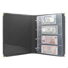 Álbum Fichário 50 Folhas para Cédulas 4 Espaços 32x24 Cobra GF, é um kit de fichário que acompanha folhas para cédulas em acetato tamanho 32x24cm, a transparência da folha é alta e cristalina, de forma que é possível ver sua cédula sem interferências, e de ambos os lados: frente e verso, dessa forma é possível apreciar sua coleção da melhor forma. Esse kit de folhas é feito em um material resistente sendo o principal organizador de cédulas colecionáveis para colecionador.