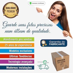 atendendo a necessidade de um público mais exigente nossos álbuns foram fabricados com os melhores materiais do mercado. Os álbuns de fotos variadas possuem capas impressas em papel couchê com acabamento em laminação fosca. Esse tipo de acabamento agrega valor, pois deixa a impressão impecável, discreto e elegante. Além disso, proporciona maior durabilidade, mantendo a qualidade do material mesmo quando utilizado com frequência. Benefícios da laminação fosca