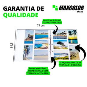 diversificada assim como suas recordações. Para aquela viagem inesquecível em outro país, o passeio pelo interior ou mesmo aquela visita memorável em algum lugar histórico, os álbuns de fotos da linha mega tem um formato maior e grande capacidade de armazenar fotos. Capa dura com revestimento vinílico ou impressa com laminação fosca. Álbum ampliável, encadernação com ferragem, aceita refil. Folhas em plástico texturizado branco. Para 500 fotos 10x15