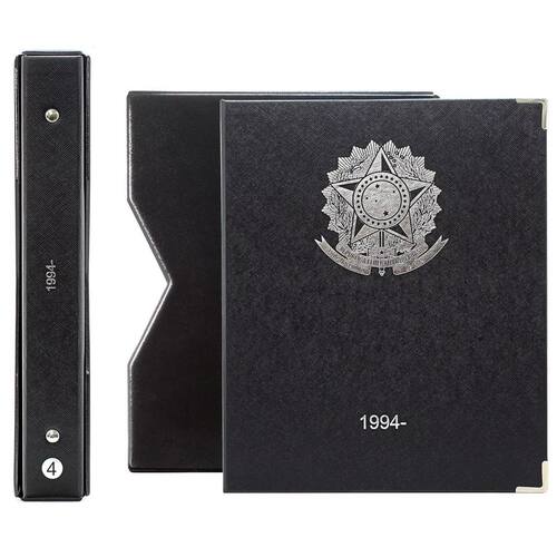O Álbum de Luxo Moedas De Luxo Nº 4 República Real 1994 - 2029 Preto acompanha um box de proteção e cantoneiras metálicas, que oferecem ainda mais segurança e proteção para suas moedas.