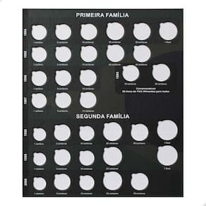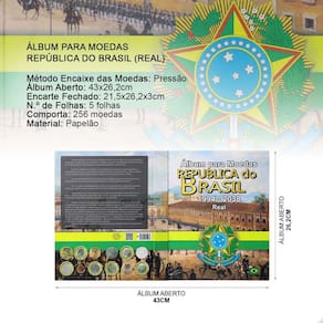Agora ficou mais fácil organizar suas moedas em um único álbum. Neste álbum você encontrará espaço para as moedas do Plano Real de 1994 até 2038, incluindo todas as comemorativas. Com este álbum é possível visualmente identificar quais moedas faltam para sua coleção e quais você já conseguiu. Dessa forma fica mais fácil de completar sua coleção de Moedas do Plano Real.