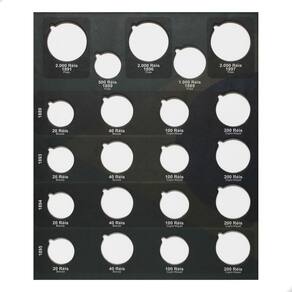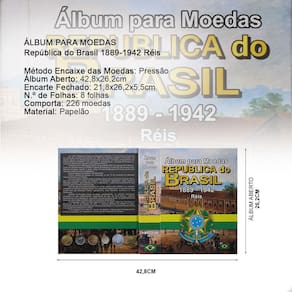Organizar sua coleção de moedas nunca foi tão fácil e prazeroso! Este álbum exclusivo para moedas do Padrão Réis é perfeito para quem valoriza organização e proteção. Com espaços dedicados para todas as moedas emitidas para circulação normal entre 1889 e 1942, ele é um item indispensável para colecionadores apaixonados.Feito com papelão super reforçado na capa e em todas as páginas, o álbum combina durabilidade e elegância. O método de armazenamento é simples e eficiente: basta colocar suas moedas nos espaços indicados e pressionar levemente para garantir o alinhamento perfeito nos eixos horizontal e vertical. Cada detalhe foi pensado para valorizar a apresentação de sua coleção, com pequenas aberturas que permitem retirar as moedas de forma prática e segura sempre que necessário.Além de proteger suas moedas contra danos e desgastes, o álbum torna o processo de catalogar e identificar as peças muito mais intuitivo, ajudando você a visualizar o que já possui e quais itens ainda faltam para completar sua coleção. O design bem planejado destaca a beleza histórica de cada exemplar do Padrão Réis, transformando sua coleção em uma verdadeira obra de arte.Seja para iniciantes ou colecionadores experientes, este álbum é a escolha ideal para manter suas moedas organizadas, protegidas e com uma apresentação impecável. Dê um passo à frente na sua coleção e faça dela um orgulho ainda maior!Características do ÁlbumMaterial: Papelão ReforçadoNúmero de Folhas: 8 folhasDimensão Fechado: 21,8cm x 26,2cm x 5,5cmDimensão Aberto: 42,8cm x 26,2cmTotal de Medalhas: 226Dentre as Moedas dessa coleção, podemos destacar:- Moedas República Velha (2000, 1000, 500, 200, 100, 50, 40 e 20 réis) (1889 - 1929)- Moedas Comemorativas do 4º Centenário do Descobrimento (1900)- Moedas com Algarismos Romanos MCMI (1901)- Todas as Moedas da Era Vargas, incluindo série Brasileiros Ilustrese Série Vargas (2000, 1000, 500, 400, 200, 100, 40 e 20 réis) (1930 - 1945)- Moedas Comemorativas Vicentinas de 1932 (4º Centenário da Colonização do Brasil)