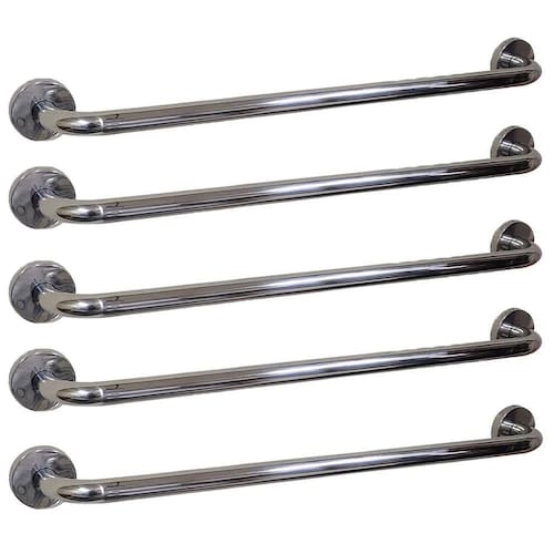 Alça Apoio Kit 5 Uni Aço Inox 50cm Idoso Acessibilidade Pcd Cadeirante Gestante Suporte Anti Queda Banho Box Banheiro - Cinza prata