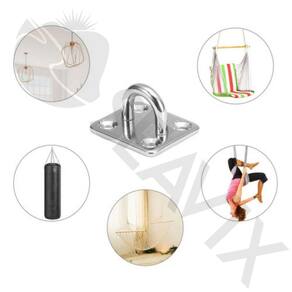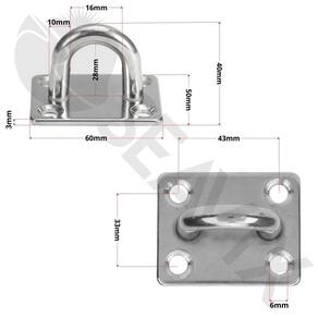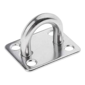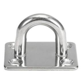 Informaçõe adicionais Nosso código: 4365 Feito de aço inox 304 Ideal para amarração de toldos e áreas ao ar livre. Alta resistência Dimensão da base: 60x50mm Furo da base: 6 mm