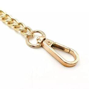 Alça de Bolsa com Corrente e Mosquetão Dourado e Branco 120cm Alça de Bolsa com Corrente e Mosquetão Dourado e Branco 120cm A alça de bolsa com corrente é perfeita para realizar a substituição das alças de bolsa ou para agregar valor ao seu artesanato.Nossa alça possui uma alta durabilidade e dois mosquetões para aplicação em argolas ou fechos. Tamanhos: Tamanho Geral: 120cmTamanho da alça: 30,5cm x 2,2cm espessura: 3mm Tamanho da corrente: 46cm x 0,9cm espessura: 2mm Tamanho da argola: 2,2cm x 3,2cm espessura: 3mm Tamanho do Mosquetão: 13mm x 40mm interno: 17mm/ espessura: 4mm Ficha Técnica - Composição: 60% Aluminio / 35% Couro Ecológico / 5% Liga de metal - Quantidade: 1 unidade Marca: Lns