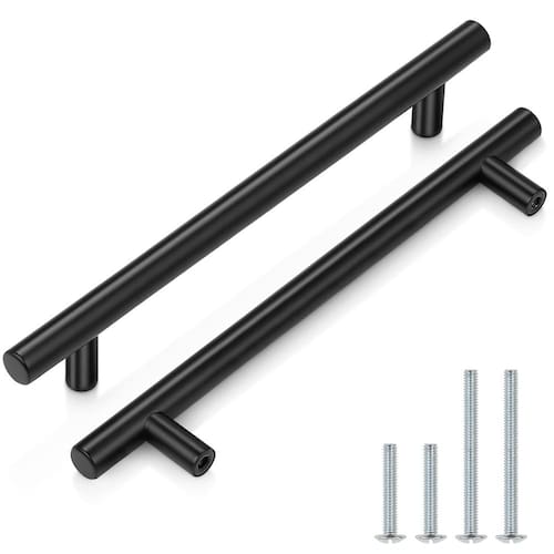 O acabamento da alça é preto elegante, a cor é mais preta lisa do que preto fosco. Consulte as imagens da lista. Este puxador de barra T tem vários tamanhos, de botão de furo único a alça de espaçamento de parafusos de 25,4 cm. Confirme tanto de centro a centro nos orifícios que estão na placa quanto a espessura da placa antes de escolher o tamanho. O diâmetro da alça é de 12 mm (0,5 polegada), normalmente, é utilizado na cozinha/banheiro/quarto: armário, armário, guarda-roupa, cômoda... gavetas ou porta de móveis internos. Cada alça vem com seus próprios parafusos, o comprimento é de 25 mm (1 polegada), serve para placa de espessura de 14 mm a 19 mm. Se o seu for mais espesso como a frente da gaveta, compre parafusos mais longos no link: https://www.amazon.com/dp/B01875WNI6 Se você quiser algo que pareça sólido e pesado£¬Escolha esta: https://www.amazon.com/dp/B072BQJM3X). Mas se você está procurando uma boa aparência a um preço extremamente razoável, isso é para você! Boa atualização para cozinha, banheiro ou quarto! A Probrico comercializa produtos em ferragens para armários: puxadores e maçanetas, escorregadores de gaveta, dobradiça de porta, dobradiça oculta, fechadura da porta... Você pode encontrar o que precisa e mais do que precisa na loja Probrico . A Probrico Hardware oferece ferragens de uma variedade de designs, qualidade garantida e acessível - [Tamanho da alça do armário]: Centros dos furos: 192 mm (7-9/16"); Comprimento total: 256 mm; Diâmetro: 12 mm; Projeção: 32mm (1-1/4") - [Cor e material]: acabamento preto plano, feito de aço inoxidável de alta qualidade, tubo redondo oco - [Ampla variedade de uso]: Adequado para diferentes estilos de armários, guarda-roupa, gaveta, armário de vinho, armário, armário de cozinha e muito mais - [Comprimento do parafuso]: Vem com parafusos M4*25mm e M4*45mm, caberá na maioria das espessuras padrão da placa de armário. - [Estilo Euro]: O puxador dos armários é uma maneira ideal de embelezar uma sala inteira. Faça das ferragens do armário uma parte da decoração da sua casa hoje.