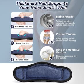 - ?Absorve choques e alivia a dor?A almofada de compressão resiliente na alça segura confortavelmente a patelar ao redor do joelho e absorve os choques. Reduz a dor associada à tendinite patelar, joelho de saltador, joelho de corredor, condromalácia.
