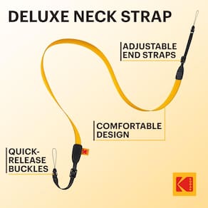 Proteja sua câmera com estilo! Esta coleção vibrante inclui seis cores divertidas para você escolher, permitindo que você expresse seu estilo único enquanto mantém sua câmera segura e protegida. Projetadas para a Kodak Smile + e versáteis o suficiente para caber em qualquer câmera com alças de montagem, essas alças ajustáveis oferecem flexibilidade e conforto para sessões fotográficas prolongadas e a flexibilidade de escolher como usá-las. Abandone as alças opacas da câmera e adicione um toque de cor ao seu jogo de fotografia com as tiras de pescoço Kodak Color. - Combinação perfeita Experimente a verdadeira qualidade Kodak e amarre sua câmera com estilo. As alças de pescoço Kodak Color se encaixam perfeitamente no seu Kodak Smile + porque foram especialmente projetadas pela sua marca favorita. O design confortável inclui o emblema clássico da Kodak e se encaixa em todas as câmeras com alças de montagem. - O pacote Mix it Up Color inclui seis cores divertidas para você escolher. Combine sua pulseira com seu estilo com pulseiras brancas brilhantes, pretas profundas, rosa claro, água-marinha, azul celeste e rosa elétrico! As fivelas de liberação rápida facilitam a fixação e a desmontagem. - Use do seu jeito Ajuste as tiras finais ao comprimento desejado e use-as no pescoço, pendure-as no pulso ou coloque-as sobre o ombro. Mantenha sua câmera pronta e carregue confortavelmente seu peso graças ao design ergonômico. - Seguro e protegido Proteja as pontas nas alças de montagem da câmera e nunca se preocupe com a possibilidade de a câmera cair novamente. O sistema de laço e clipe se prende com segurança às alças de montagem de qualquer câmera, para que você possa confiar que ela está em boas mãos. - Leve e confortável O material leve e confortável torna o transporte da câmera fácil e conveniente, mesmo para uso prolongado. Com um design de nylon durável, as alças são feitas para lidar com qualquer clima e resistir ao uso diário, para que você possa carregar sua câmera confortavelmente por muitos anos.