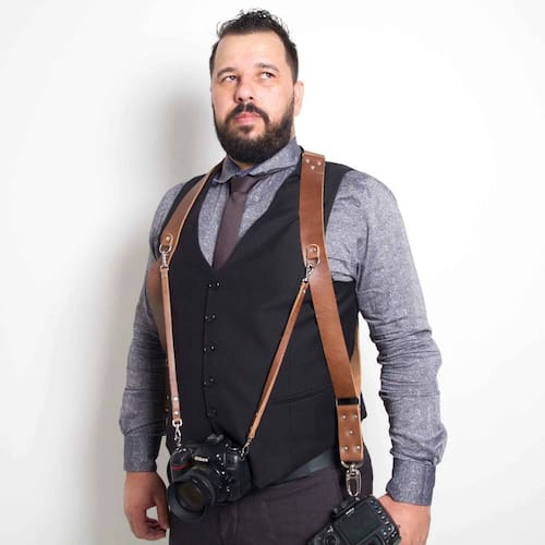 Pode ser separada em 2 alças para 1 camera cada. A alça dupla em couro ded cases foi concebida em couro , colorido e tratado para ter o melhor conforto, segurança e elegância que todo mundo merece. Nossas alças são produzidas artesanalmente com um dos melhores couros do mercado e um suporte de aço, com mosquetão dupla trava, além de cordão adicional de segurança. Proporcionando mais liberdade na hora de fotografar. Ergometria seu desenho permite um melhor apoio nas costas, trazendo conforto para quem usa. Chega de ficar com dores no pescoço e na coluna após horas e horas com suas câmeras. Ela é totalmente ajustável para diferentes tamanhos de pessoas. Caso mesmo assim fique grande em você é só fazer mais furos como em um cinto de couro. Engate e fixação: conectando-se a câmera com parafuso de 1/4 fixado no orifício para o tripé de sua câmera serve para todas as câmeras dslr, binóculos e câmeras de vídeo. Nossas alças estão entre as mais seguras do mercado, não somente pelo material em que é confeccionada, mas também por utilizar um backup de segurança. O seu equipamento fica preso por mais um ponto, ele é fixado ao suporte de aço e fixado na câmera no local em que seria fixada um dos lados de uma alça de pescoço comum, impedindo que o equipamento caia em caso de falha na fixação através do parafuso!
