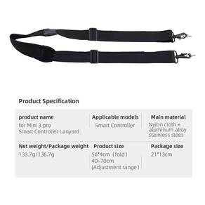 Smart RC Controle Remoto com Tela Lanyard Neck Strap Ajustável Segurança Pendurado Sling Belt para DJI Mini 3 PRO Drone Acessórios PretoCaracterística:- Liberte suas mãos e facilite a fotografia aérea;- O pescoço fica confortável;- Parafusos de aço inoxidável, durável e anti-queda;- Confortável de usar, o comprimento mais longo pode ser ajustado para 70cm, e a fivela ajustável atende aos hábitos de uso de diferentes grupos de pessoas.Especificação:Nome: Correia para controle a distância da telaModelos aplicáveis: para Mini 3 Pro controle remoto com telaMaterial principal: nylon pano + alumínio liga + aço inoxidávelCor: pretoPeso neto: 133.7gPeso bruto: 136.7gTamanho do produto: 56x 4cm/22.05x1.57in (dobrado ao meio), 40-70cm/15.75-27.56in (faixa de ajuste)Embalagem tamanho: 21x1 3cm/8.27x5.12inEmbalagem método: sacoNota:Não inclui controle remoto com tela.
