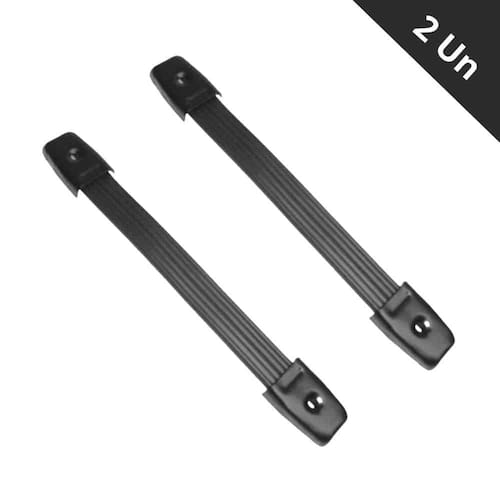 Alça de borracha preta externa com tira de metal interno, com fixações de metal cases e maletas. Kit com 2 unidades.