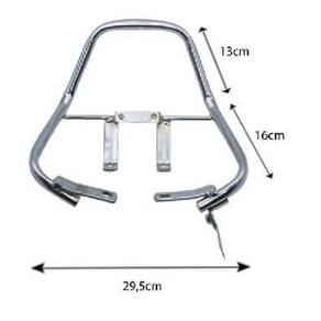 Alça desenvolvida com desenho ergonômico que proporciona conforto e segurança na qual o passageiro possa segurar-se. Possui curvatura traseira que se sobressai à parte traseira do banco da motocicleta. Produto produzido com materiais de alta qualidade. Para uma melhor instalação, procure um qualificado. Cor cromado. Aplicação Titan 150 ano 2004 até 2008 Medidas Distância entre furos frente 8cm Distância entre furos atrás 9cm Dimensões do suporte Largura 29,5cm Comprimento total 32cm Marca: Não Informado Ean: 1000000245189