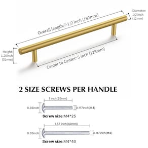Haliwu Puxadores de armário de ouro com 20 unidades, puxadores de armário de ouro escovado 12,7 cm centro de furo puxadores de aço inoxidável para armários puxadores de gaveta de cômoda ouro 5 inc centro de furo - ?O pacote inclui?Pacote com 20 puxadores de armário de ouro escovado. Cada puxador inclui dois parafusos de 2,5 cm e dois parafusos de 3,5 cm. Sinta-se à vontade para entrar em contato conosco se forem necessários parafusos de outros tamanhos. - ?Tamanho?Comprimento total de 7-1/2 polegada; centro do furo de 5 polegadas (128 mm). Diâmetro: 12 mm (1/5.1 in); projeção: 1-1/2 polegada (32 mm) - ?Material?Aço inoxidável com acabamento em latão escovado; antioxidante, brilhante por muito tempo e não deixa impressões digitais - ?Uso?Adequado para seus armários, gavetas, cômodas, armários, armários. uma decoração perfeita para sua casa - ?Garantia de qualidade?Se você encontrar algum problema de qualidade com nossos puxadores de armário, sinta-se à vontade para entrar em contato conosco. Prometemos deixar você sem preocupações, compre com confiança.