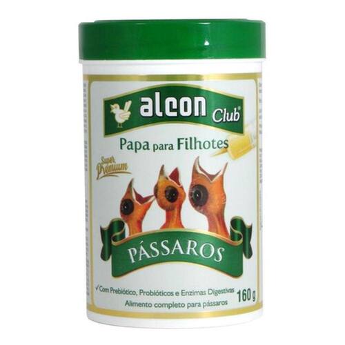 Ração Alcon Club Papa Para Pássaros Filhotes Silvestres - 160g - Alcon Club Papa para Filhotes Pássaros é um alimento completo desenvolvido para alimentação de filhotes do nascimento ao “desmame”. Indicado para diversas espécies de pássaros, como Curiós, Bicudos, Azulões, Canários, Exóticos, Coleiros, Sabiás, Trinca-Ferros, entre outros.
