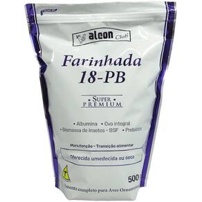 Alcon Club Farinhada 18-Pb 500G Super Premium Aves A Alcon Club Farinhada 18-PB é um alimento completo Super Premium, especialmente desenvolvido para atender às necessidades nutricionais e energéticas de aves adultas durante a fase de manutenção ou como complemento da dieta em períodos especiais. Essa farinhada possui uma textura, granulometria e maciez ideais para os períodos de muda de bico e muda de penas. Ela é muito recomendada para realizar transições alimentares em aves que têm dificuldade em aceitar o alimento extrusado. Sua composição é criteriosamente balanceada, livre de corantes artificiais e palatabilizantes. Contém albumina, ovo integral e biomassa de insetos - BSF Black Soldier Fly , uma fonte de proteína sustentável de alta biodisponibilidade, rica em ácidos graxos e aminoácidos. Além disso, a Alcon Club Farinhada 18-PB apresenta alta digestibilidade e palatabilidade, sendo muito atrativa para as aves. Modo de uso: - Pode ser oferecida seca ou umedecida. Para umedecer, siga a proporção de uma parte de água para oito partes do produto. Despeje suavemente a água sobre o alimento, mexendo a mistura durante o processo. - Disponibilize em um comedouro limpo e separado de outros alimentos. Quando misturado às frutas, verduras ou legumes, não é necessário acrescentar água, pois o alimento receberá a umidade dos vegetais. - Quando umedecida, substitua o alimento e lave o comedouro a cada seis horas. Durante a fase de manutenção, ofereça a Alcon Club Farinhada 18-PB juntamente com alimentos frescos. Já em períodos especiais, como muda de penas ou de bico, transições alimentares, e reprodução, ofereça exclusivamente a Alcon Club Farinhada 18-PB. É importante observar as necessidades individuais de cada ave e adaptar a alimentação conforme necessário. Por isso, é recomendado visitar regularmente um médico veterinário especializado para garantir a saúde e o bem-estar das aves. Composição Básica: Ovo em pó 3,4% , farinha de arroz, farinha de larva de mosca soldado negra desidratada 1,1% , clara de ovo desidratada 1,8% , aditivo zootécnico prebiótico, levedura inativada desidratada, cenoura desidratada, aditivo tecnológico estabilizante fibra de trigo , aditivo nutricional mineral, açúcar de cana-de-açúcar, carbonato de cálcio, aditivo nutricional vitamínico mineral, óleo de soja refinado, proteína texturizada de soja, farinha de milho, farelo de soja, aditivo sensorial pigmentante extrato de urucum , aditivo sensorial aromatizante aroma de anis , aditivo tecnológico conservante sorbato de potássio , aditivos tecnológicos antioxidantes ácido cítrico, BHA, BHT . Espécies doadoras de gene: Agrobacterium tumefaciens, Bacillus thuringiensis, Arabidopsis thaliana, Streptomyces viridochromogenes. Garanta uma alimentação completa e balanceada para suas aves com a Alcon Club Farinhada 18-PB 500G Super Premium.