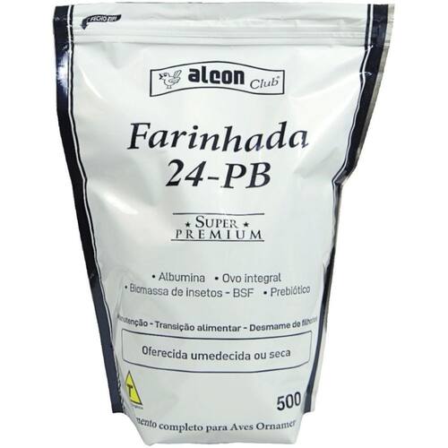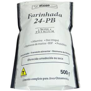 Alcon Club Farinhada 24-Pb 500G Super Premium Aves A Alcon Club Farinhada 24-Pb 500G Super Premium Aves é um alimento completo e cientificamente elaborado para atender às necessidades nutricionais e energéticas de aves ornamentais adultas. Com textura, granulometria e maciez ideais, é especialmente recomendado para os períodos de muda de bico, muda de penas e desmame de filhotes. Esse alimento é perfeito para realizar transições alimentares em aves que têm dificuldade em aceitar o alimento extrusado. Sua composição balanceada e livre de corantes artificiais e palatabilizantes conta com ingredientes como albumina, ovo integral e biomassa de insetos - BSF Black Soldier Fly , uma fonte de proteína sustentável de alta biodisponibilidade, rica em ácidos graxos e aminoácidos. Além disso, é altamente palatável e atrativo às aves. A Alcon Club Farinhada 24-Pb 500G Super Premium Aves pode ser oferecida seca ou umedecida. Para umedecer, basta seguir a proporção de uma parte de água para seis partes do produto. Despeje suavemente a água sobre o alimento, mexendo a mistura durante o processo. Disponibilize em um comedouro limpo e separado de outros alimentos. Caso prefira misturar a farinhada com frutas, verduras ou legumes, não é necessário acrescentar água, pois o alimento receberá a umidade dos vegetais. Lembre-se de substituir o alimento umedecido e lavar o comedouro a cada seis horas. Durante a fase de manutenção, recomenda-se oferecer a Alcon Club Farinhada 24-Pb 500G Super Premium Aves juntamente com alimentos frescos. Já em períodos especiais, como muda de penas ou de bico, transições alimentares, desmame, e reprodução, a farinhada pode ser oferecida exclusivamente. É importante observar as necessidades individuais de cada ave e adaptar a alimentação conforme necessário. Para garantir a saúde e o bem-estar das aves, é recomendado visitar regularmente um médico veterinário especializado. Composição Básica: - Clara de ovo desidratada 6,4% - Farinha de arroz - Ovo em pó 3,4% - Farinha de larva de mosca soldado negra desidratada 4% - Aditivo zootécnico prebiótico - Levedura inativada desidratada - Cenoura desidratada - Aditivo tecnológico estabilizante fibra de trigo - Aditivo nutricional mineral - Açúcar de cana-de-açúcar - Carbonato de cálcio - Aditivo nutricional vitamínico mineral - Óleo de soja refinado - Proteína texturizada de soja - Farinha de milho - Farelo de soja - Aditivo sensorial pigmentante extrato de urucum - Aditivo sensorial aromatizante aroma de banana - Aditivo tecnológico conservante sorbato de potássio - Aditivos tecnológicos antioxidantes ácido cítrico, BHA, BHT Espécies doadoras de gene: Agrobacterium tumefaciens, Bacillus thuringiensis, Arabidopsis thaliana, Streptomyces viridochromogenes. A Alcon Club Farinhada 24-Pb 500G Super Premium Aves é a escolha ideal para garantir uma alimentação de qualidade e balanceada para as suas aves ornamentais.