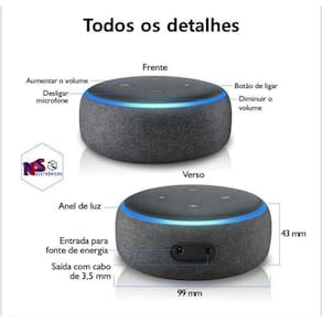 Alexa Echo Dot 3 Geraçao Preta Amazon Descrição Alexa echo dot 4 geraçao a amazon echo é a caixa de som inteligente que chega como o carro chefe da alexa, assistente pessoal da empresa, sendo o modelo que oferece a melhor qualidade de som entre os modelos vendidos no brasil. O que é alexa ... Assim como suas concorrentes a alexa é uma assistente conversacional, capaz de entender contexto até certo ponto e executar tarefas simples, como configurar alarmes, informar a situação do trânsito ou a previsão do tempo, executar uma lista de músicas ou reproduzir podcasts. Lançamento: 2021 dimensão: 148 x 99 x 99 mm peso: 780 gramas sistema: amazon alexa wireless: sim potência de som: woofer de neodímio 3 e tweeter de 0,6 como usar a alexa 1. De 8 faça login na sua conta amazon para utilizar a alexa foto: reprodução/helito beggiora. ... 2. De 8 selecione o dispositivo amazon alexa e confirme seu nome foto: reprodução/helito beggiora. O que a alexa pode fazer Controlar a casa inteligente: ... Fazer uma chamada: ... Organizar a agenda: ... Saber as principais notícias do dia: ... Escolher uma música ou filme: ... Pedir um uber: ... Pedir uma refeição no ifood: ... Receber ajuda nas tarefas: antes de Adaptávelar: -leia o anúncio com atenção. -tire suas dúvidas com o vendedor. -certifique-se que a , cor do produto estão corretos. -o valor do envio deve ser somado ao preço do produto. -. Agora já pode efetuar a Adaptávela.