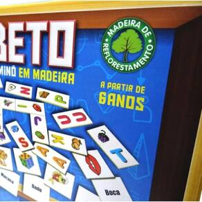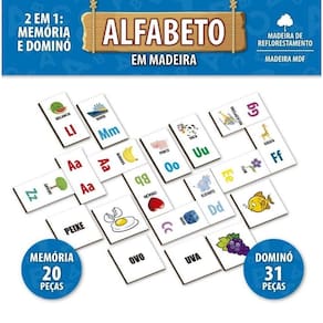 Alfabeto em madeira 2 em 1, Dominó e Memória.