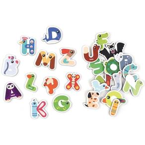 Contém 26 letras de madeira.