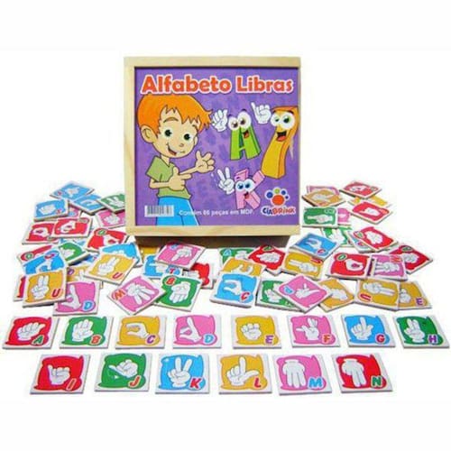 Alfabeto Libras em Madeira - 66 peças - Ciabrink Alfabeto Libras - CiabrinkFabricado em madeira MDF contendo 66 peças.Material utilizado para o ensinamento do alfabeto em libras Língua Brasileira de Sinais , em cada placa é apresentado uma letra e o sinal correspondente a mesma.Através deste material, o professor faz com que a criança, realize associações entre o desenho e a letra correspondente.Desenvolve a associação entre gravuras e letras, formação de palavras, e criatividade.Ref: 1155Medidas de cada placa: 5x5 cm.Medidas da caixa de madeira: 18x6x18 cm.Idade: a partir de 4 anos.INMETRO CE-BRI/ICEPEX-N 00934-29 NBR NM 300/2004