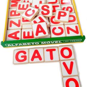 - Quais brincadeiras podem ser feitas com o Alfabeto Móvel 60 Peças? O Alfabeto Móvel 60 Peças possibilita a realização de diversas brincadeiras, como palavras cruzadas e forca. Estas brincadeiras estimulam o raciocínio lógico e a criatividade das crianças.