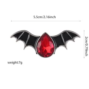 Material: liga Tamanho: 5,5 x 2 cm Peso: 7 g Quantidade: você receberá todas as peças em quantidade igual à primeira foto principal. ShowGothic Bat Style — Design exclusivo de asa de morcego com uma impressionante peça central de cristal vermelho, adicionando uma atmosfera gótica dramática e elegante. Construção em liga durável — Feita de liga resistente com detalhes em esmalte, garantindo brilho duradouro e resistência ao desbotamento. Pino de fixação seguro — Possui um fecho forte que se mantém firme nas roupas sem cair facilmente. Uso versátil — Funciona como alfinetes de blusa, broche, alfinete de lapela ou crachá, perfeito para jaquetas, casacos, camisas e fantasias. Pronto para Halloween e Cosplay — Um acessório ousado para Halloween, festas temáticas, roupas de cosplay e looks de moda alternativa.