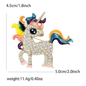 Material: liga Tamanho: 5 x 4,5 cm Peso: 11,4 g Quantidade: você receberá todas as peças em quantidade igual à primeira foto principal ShowCharming Unicorn Design — Broche de unicórnio cintilante decorado com cristais e crina esmaltada arco-íris, simbolizando fantasia e elegância. Construção em liga durável — Feita de liga de qualidade com acabamento esmaltado, leve e resistente, garantindo brilho e durabilidade duradouros. Estilo versátil — perfeito como alfinetes de blusa, broche ou crachá de lapela, adequado para casacos, jaquetas, suéteres, cachecóis ou vestidos. Acessório atraente — As cores brilhantes do arco-íris e os strass cintilantes fazem deste broche uma atraente declaração de moda para várias ocasiões. Uso confortável — Medindo 5x4,5 cm e pesando 11,4 g, fácil de apertar com segurança e confortável para uso diário sem danificar o tecido.