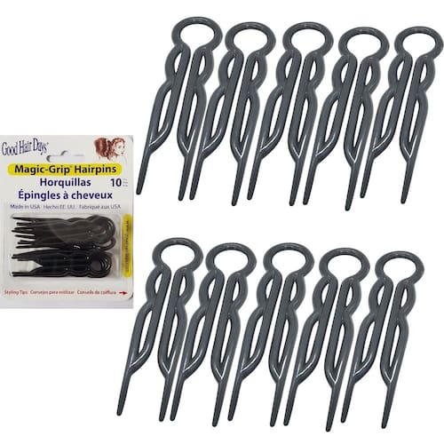 - Design de pino de cabelo patenteado feito com plástico flexível e forte. Uma combinação vencedora melhorada pela Good Hair Days, uma fabricante familiar de acessórios de cabelo dos EUA desde 1996. Com décadas de conhecimento do produto e experiência prática, nossos produtos capilares de alta qualidade atraem todas as idades, todas as cores de cabelo e são feitos para durar para caber no seu orçamento. Com confiança, use nossos grampos de cabelo de plástico Magic-Grip para criar penteados que seguram de forma confiável o dia todo.
