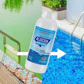 Algicida Manutenção Ultraclor é indicado para prevenir a eclosão de algas, através do uso semanal. Quando utilizado em piscinas de fibra/vinil, o algicida deve ser diluído em um balde d?água antes da aplicação. É indicado para prevenir a eclosão de algas, através do uso semanal. Quando utilizado em piscinas de fibra/vinil, deve ser diluído em um balde d?água antes da aplicação.