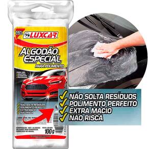 Algodão Especial para Polimento O Algodão Especial para Polimento Luxcar 100 G Foi Desenvolvido para Polir Toda a Pintura do Seu Carro sem Riscar e de Maneira Uniforme. Ideal para Aplicar Ceras e Massas de Polir em Geral, Pode Ser Utilizado Também para Limpeza de Telas e Partes Cromadas. vantagens: ? Não Solta Resíduos. ? Polimento Perfeito. ? Extra Macio. ? Não Risca. modo de Usar: para Uso Industrial, Automotivo e . validade Indeterminada. luxcar É Referência em Produtos Automotivos, Uma das Pioneiras do Setor É Líder Absoluta em Acessórios para Limpeza e Embelezamento Automotivos. disponível: - Algodão Especial para Polimento 100 G Luxcar características: - de Excelente Qualidade ficha Técnica: - Marca Universal - Modelo Flaps Produtos Automotivos Ltda - Encaixe Perfeito Semelhante Ao serve para Os Modelos e Anos: universal importante: - de 3 Meses - a Responsabilidade de Instalação e Uso Fica com Comprador, Recomendamos Ser Feita por Um Especializado. Marca: Não Informado