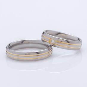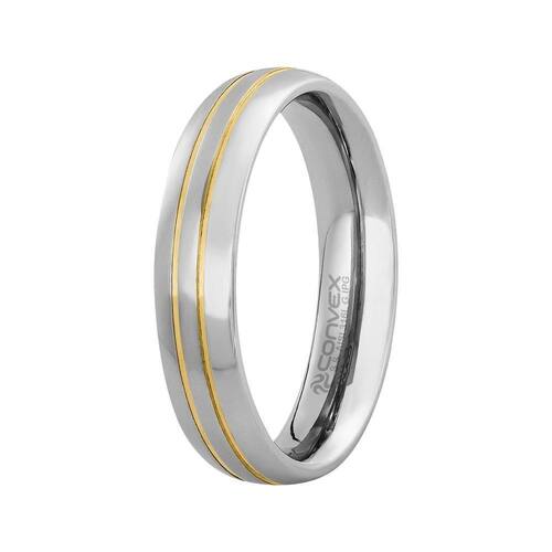Aliança em Aço Berlim 5mm com Filete Central Duplo Gold IPG