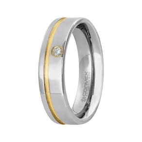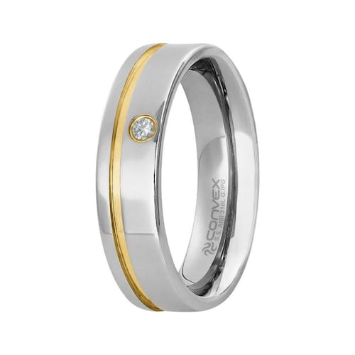 Aliança em Aço Paris 6mm com Filete Lateral Gold IPG e Zircônia 2mm