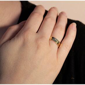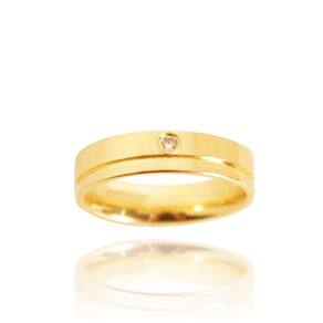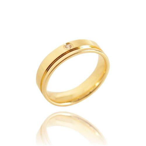 Aliança  Semijoia Banho de Ouro 18K  Quadrada com Friso 5 mm de largura em modelo clássico, tradicional, anatômico que traz muito conforto para ser usada. Com o detalhe da aplicação de um Ponto de  Luz de Zircônia traz ainda mais brilho para marcar a união, a verdade e a constância de um relacionamento.