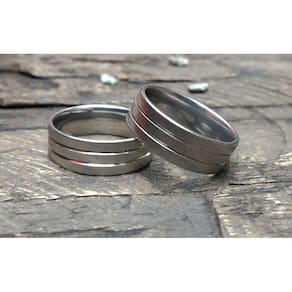Aliança de Namoro com Filetes em Aço 8mm Tamanho 24