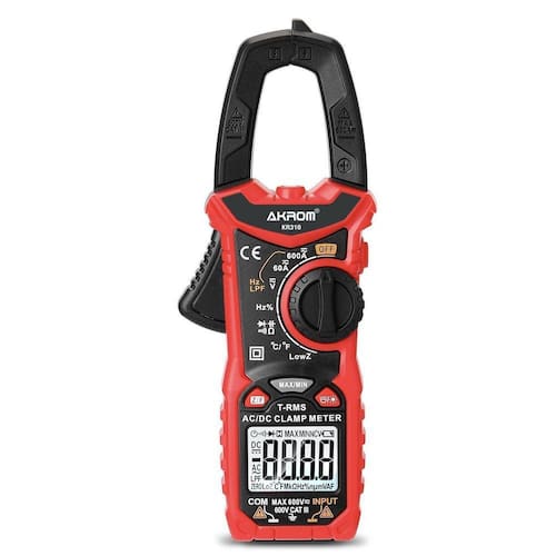 Alicate amperímetro ac/dc true rmsKr310Descrição geralO alicate amperímetro kr310 mede tensão e corrente ac true rms 600v / 600a e tensão e corrente dc 600v / 600a . Também realiza medições de frequência e duty cycle ciclo de trabalho , resistência, capacitância, temperatura com termopar tipo k , queda de tensão em diodo e teste de continuidade.Possui detector de tensão sem contato, função hold, registros de max e min e função low pass filter filtro passa baixas . Possui lanterna e seu amplo visor lcd apresenta iluminação backlight .Está em conformidade com as normas iec 61010-1, iec 61010-2-030 e iec 61010-2-032 cat iii 600v e dupla isolação .Especificações técnicasTensão dc: Escalas: 600mv/6v/60v/600v Resolução: 0.1mv/0.001v/0.01v/0.1v Exatidão: 0.5%+5d Tensão ac true rms : Escalas: 6v/60v/600v Resolução: 0.001v/0.01v/0.1v Exatidão: 0.8%+5d Corrente dc: Escalas: 60a/600a Resolução: 0.01a/0.1a Exatidão: 2.5%+5d Corrente ac true rms : Escalas: 60a/600a Resolução: 0.01a/0.1a Exatidão: 40-400hz: 2.5%+5d Outro: 3.0%+10d Resistência: Escalas: 600/6k/60k/600k/6m/60m ohms Resolução: 0.1/0.001k/0.01k/0.1k/0.001m/0.01m Exatidão: 1.0%+5d Capacitância: Escalas: 10nf/100nf/1000nf/10uf/100uf/1000uf/10mf/100mf Resolução: 0.001nf/0.01nf/0.1nf/0.001uf/0.01uf/0.1uf/0.001mf/0.01mf Exatidão: 4.0%+5d Frequência/duty cycle: Escalas: 10hz/100hz/1000hz/10khz/100khz/1000khz Resolução: 0.001hz/0.01hz/0.1hz/0.001khz/0.01khz/0.1khz Exatidão: 1.0%+3d Escalas: 10mhz / 199% Resolução: 0.001mhz/0.1% Exatidão: 3.0%+3d Temperatura: Faixas de medição: -20 a 0c / 0 a 400c / 400 a 1000c Resolução: 1c Exatidão: 3c / 1.0% ou 2c / 2.0%Indicação acima da faixa: visor indica olAbertura da garra de medição: 27mmGrau de poluição: 2 uso interno Temperatura de operação: 0 a 40cUmidade de operação: 10 a 80%ur sem condensação Alimentação: 3v 2 pilhas aaa Dimensões l x a x p : 70 x 190 x 30 mmPeso: 220gRecursos principais- medição de tensão e corrente true rms- detector de tensão sem contato ncv - registro de máximas max e mínimas min - função lpf - low pass filter filtro passa baixas - congelamento de leitura hold - seleção de escala automática- seleção c / f- desligamento automático após 15 min. De inatividade- visor iluminado backlight - lanterna- indicação de pilhas fracasItens inclusos- bolsa para transporte- 2 pilhas aaa- 2 ponteiras de teste- sonda de temperatura- manual de instruções em português