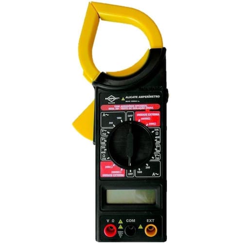 Especificações:Um alicate amperímetro é um medidor elétrico que combina um voltímetro com um medidor de corrente do tipo alicate. Como o multímetro, o alicate amperímetro passou pelo período analógico e chegou ão mundo digital da atualidade.
