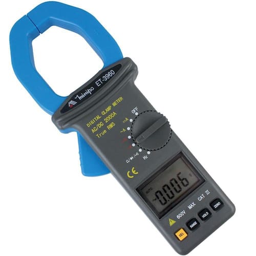 Realiza Medidas De Tensão DC E AC, Corrente DC E AC Até 2000A, Resistência E Frequência, E Testes De Diodo E Continuidade.