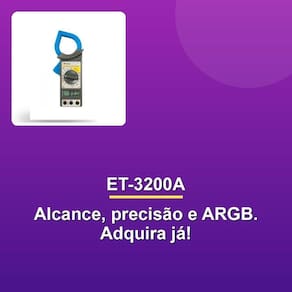Versátil e completo, o ET-3200A realiza medições de tensão DC e AC, resistência, testes de continuidade e diodo, além de possibilitar o teste de isolação por meio do opcional MI-261. Com abertura de garra de 51mm, ele é ideal para medir condutores de grande diâmetro, proporcionando maior flexibilidade em diversas aplicações. Sua mudança de faixa manual garante controle total sobre as medições, enquanto a precisão básica de 3% assegura resultados confiáveis, mesmo em tarefas mais exigentes.