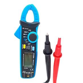 - Especificações Técnica: Display LCD / Contagem: 3 1/2 Dígitos / 2000 Iluminação: Sim True RMS: True RMS AC Corrente DC: 2/20/100A Corrente AC: 2/20/100A Tensão DC: 200m/2/20/200/600V Tensão AC: 2/20/200/600V Resistência: 200/2k/20k/200k/2M/20MO Teste de Continuidade/Diodo: Sim Capacitância: 2nF/20nF/200nF/2uF/20uF/200uF/2mF/20mF Resolução em Corrente: 0,001/0,01/0,1A Data Hold: SIm Função Máximo: - Detecção de Tensão Sem Contato (NCV): Sim Mudança de Faixa: Manual Abertura de Garra: 17mm Diâmetro de Condutor: 17mm Precisão Básica: 2,5% Categoria de Segurança: CAT III 300V Alimentação: 2x1,5 AAA Dimensões / Peso:175mm x 60mm x 33,5mm / 170g