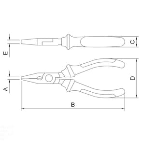Desenvolvido para prender e dobrar materiais, o alicate bico chato da Tramontina PRO é muito utilizado no segmento elétrico. Seu bico facilita o uso em locais de difícil acesso e possui sistema especial para pegar e prender objetos. A ferramenta certa para você que trabalha na indústria ou oficinas mecânicas. Orientações Forjado em aço cromo vanádio. Cabeça e articulação polidas.Têmpera total no corpo. Têmpera por indução no gume de corte.Isolação elétrica de 1.000 V CA.Produto em conformidade com a NBR9699 e NR10.DIN ISO 5745. Os alicates de corte são testados quanto à resistência ao desgaste do gume de corte em máquina de ensaio específica.Os alicates possuem dureza diferenciada no gume de corte e no corpo.Os alicates também são testados com relação à aderência das empunhaduras de PVC.Um ensaio de extrema importância analisa o grau de isolação do revestimento aplicado sobre os cabos dos alicates isolados, e que promove segurança na sua utilização em locais com tensões de até 1.000 V CA.Cortar, prender e dobrar cabos e arames.Ideal para eletroeletrônica.As ferramentas são produzidas e testadas conforme normas específicas. Características Gerais EAN13 7891114057973 DUN14 17891114057970 NCM 8203.20.10 Peso Líquido 0,1700 kg. Peso Bruto 0,1700 kg. Metragem 0,000462 m³. Dimensões Embalagem (Compr. X Larg. X Alt.) 220x 70x 30 mm. Dimensões Produto (Compr. X Larg. X Alt.) 170x 58x 18 mm. Cor 1 EF8134 Hexa Dimensão Extra A 4,3 mm. Dimensão Extra B 170,0 mm. Dimensão Extra C 18,0 mm. Dimensão Extra D 58,0 mm. Dimensão Extra E 5,0 mm. Observações Use óculos, luvas e outros equipamentos de proteção individual (EPIs) de acordo com a tarefa a ser executada. Observe as indicações de uso de cada tipo de alicate. Nunca utilize um alicate para cortar arames endurecidos, a não ser que tenha sido projetado para este fim. Nunca utilize o alicate como martelo. Ele pode trincar ou até mesmo quebrar. Nunca exponha os alicates ao calor excessivo. Isto pode alterar o tratamento térmico aplicado no corte e afetar o seu desempenho. Sempre posicione o corte do alicate perpendicularmente ao eixo do arame para uma operação mais rápida e segura. Utilize alicates isolados, identificados pela marcação 1.000 V no cabo, quando for necessário trabalhar em locais com corrente elétrica. Importante: nestes casos, inspecione a integridade da isolação elétrica, e, se aparecerem trincas na isolação, suspenda o uso imediatamente. Nunca aumente o comprimento dos cabos dos alicates. Isto amplifica a força exercida sobre a cabeça da ferramenta podendo quebrá-la. Nunca utilize o alicate em porcas e parafusos. Para estes trabalhos, indica-se o uso de chaves de aperto. Lubrifique periodicamente a articulação. Isto aumenta a vida útil do produto e melhora sua performance. Manter os alicates longe do alcance de crianças. Armazene em local limpo e seco.